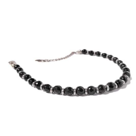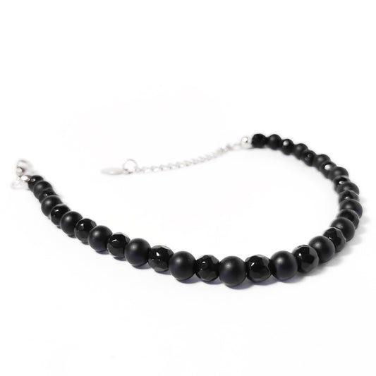 Bracciale Uomo Acciaio con Perle 6mm Onice Nero Satinato e Sfaccettato