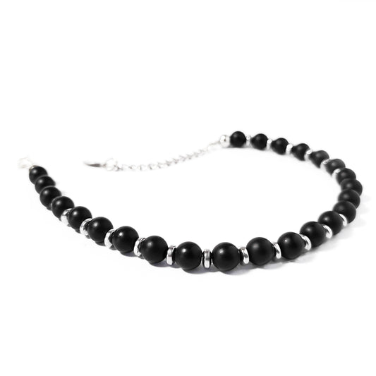 Bracciale da Uomo Onice Nero Opaco ed Ematite Argento