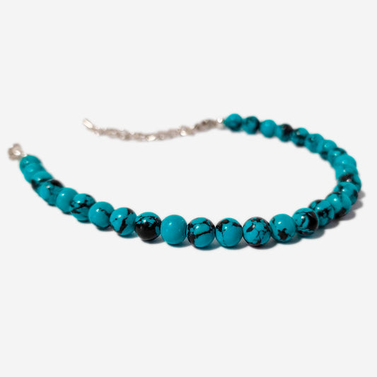 Bracciale da Uomo in Acciaio con Perle di Pietre Dure Turchese Verde Nero