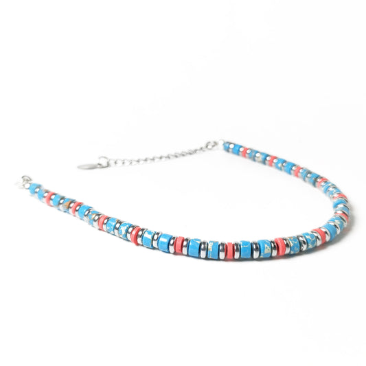 Bracciale con Rondelle di Turchese ed Ematite Argento Inserti Fuxia