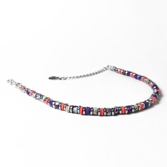 Bracciale con Pietre Dure Turchese Viola Ematite Argento e Inserti Fuxia