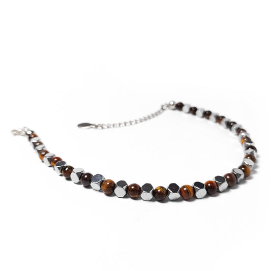 Bracciale da Uomo Occhio di Tigre ed Ematite Argento