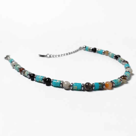 Bracciale da Uomo con Rondelle di Turchese Pietre di Agata e Rondelle di Ematite Acciaio