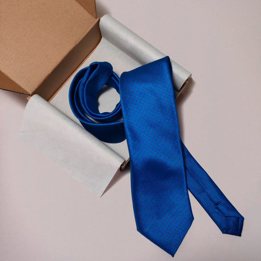 Cravatta Blu Tinta Unita con Quadretti in Rilievo Tono su Tono
