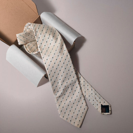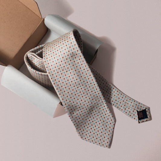 Cravatta Beige Pura Seta con Microdisegno Pois Colorati Fumagalli