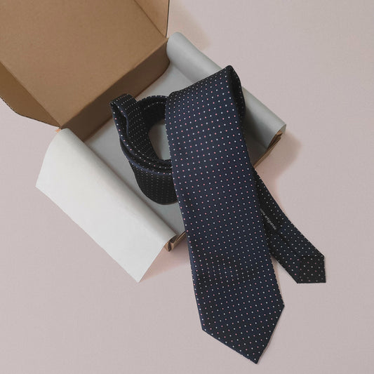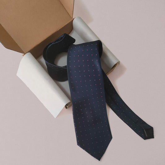 In offertaCravatta Blu con Microdisegno Puntini Fuxia